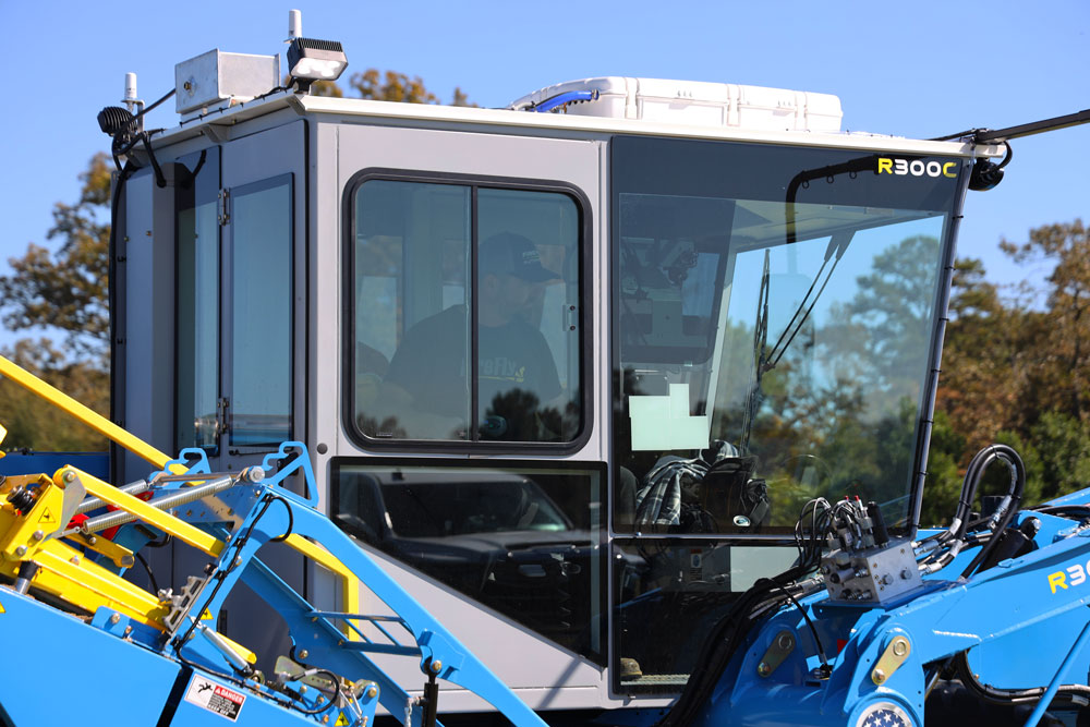 - Gray cab design with added window tinting behind the screen reduces internal temperature by 20%, lowering A/C load and extending the life of electronics and displays.